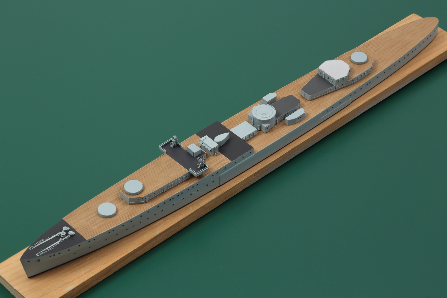 2016-4-24 上部構造物の取り付け - 英軽巡 パース改修 全ての上部構造物のディテールアップが完了しました。 その後、塗装してから船体へ取り付けていきました。 次は、艦首から甲板上の艤装品を進めていきます!